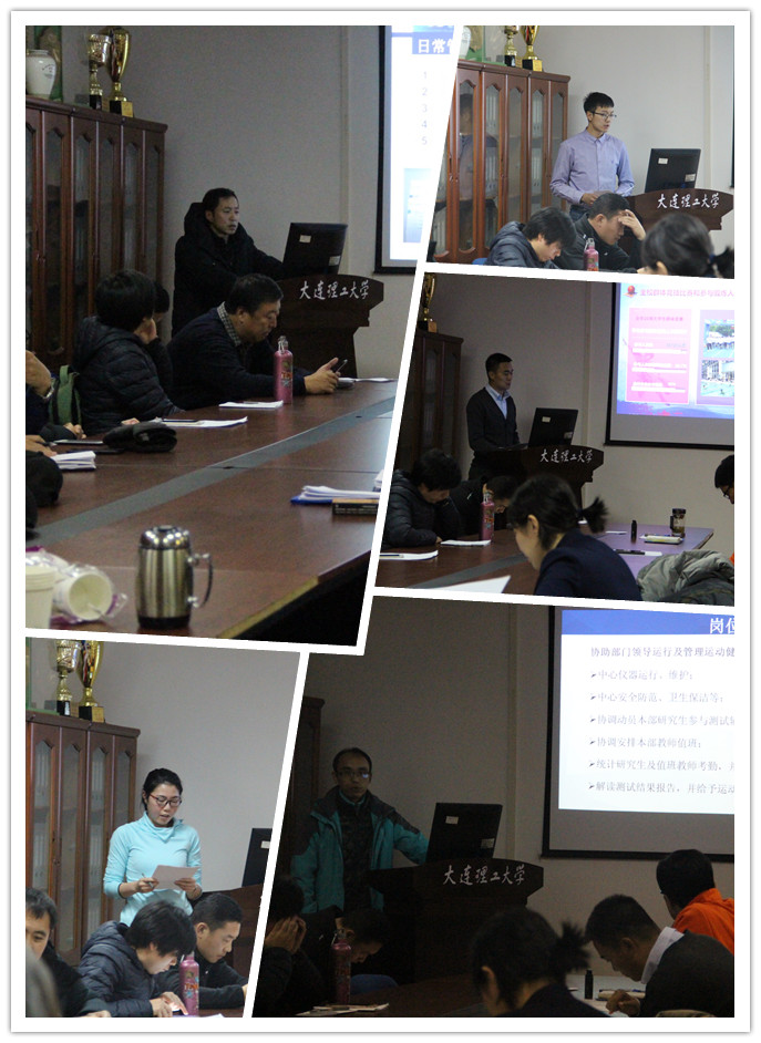 1月12日上午,体育教学部在部会议室召开2018年度体育教学部内设机构负责人述职大会,体育教学部党政班子成员、教授、科级干部、内设机构负责人、教师代表共30余人参加了会议,会议由体育教学部李芃松主任主持。会上,体育教学部科级干部、内设机构负责人共13位老师,从岗位履职情况、重点推进工作、存在不足及整改措施等几个方面对自己本年度所承担工作做以总结梳理。述职报告通过详实的数字、具体的事例、生动的图片反映出体育教学部2018年在教书育人、科学研究、群体竞赛、行政管理等工作的真实写照,也展现出大工体育人的工作风采。